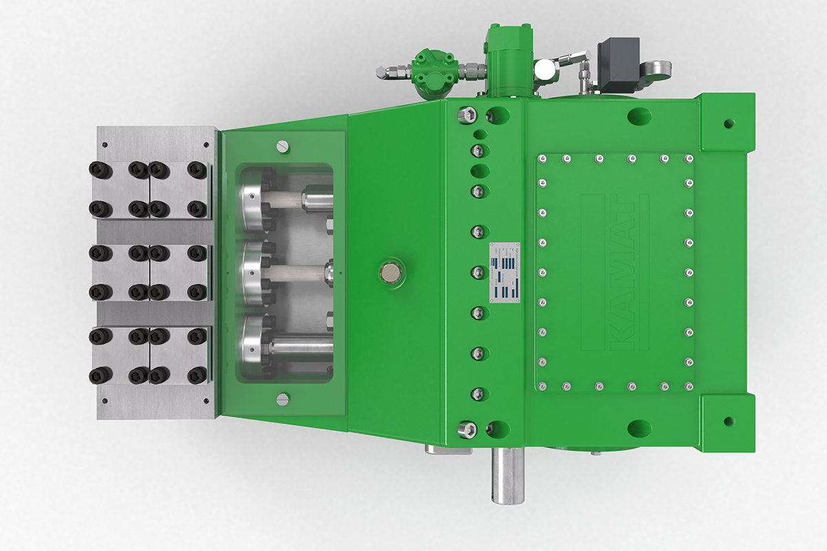 K35000高壓泵的驅動功率為350 kW,非常適合噴射和液壓應用。 例如,它經(jīng)常與大型移動式噴射系統(tǒng)一起使用,已在化工行業(yè)服務多年,并在采礦行業(yè)滿足流量從400至600 l升/ 分鐘的需求。 在這種情況下,帶有強制潤滑齒輪和油冷卻器的K35000可以滿足24/7全天候運行的要求。 K35000高壓泵采用經(jīng)典的KAMAT模塊化組件系統(tǒng)構建,因此可以靈活地適應工作壓力和介質等要求。 因此,它也經(jīng)常用于過程處理領域。